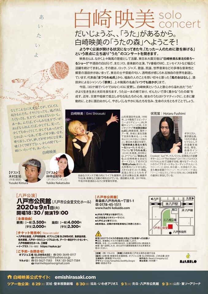 とぴっくす2020.08.252024.05.08ukipal白崎映美 solo concert 八戸公演(9月1日) ポスト シェア はてブ 送る Pocket 白崎映美solo concert八戸公演 9月1日(火)開場18:30 開演19:00 八戸市公民館 前売り 一般3,500円(当日4,000円) 学生2,000円(当日2,500円)